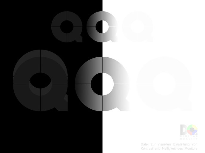 Zuerst ist der Monitor so einzustellen, dass alle Graustufen sichtbar sind. Im dritten Bild sollten dann alle Symbole klar zu erkennen sein.